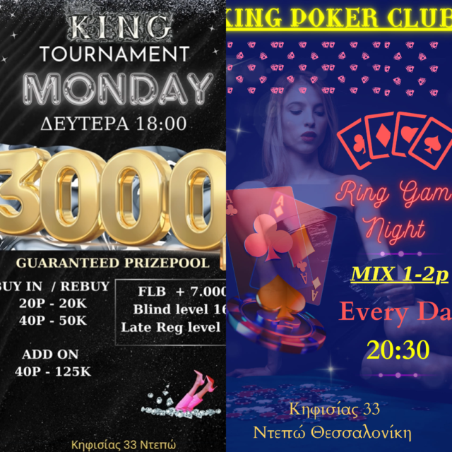 Η νέα εβδομάδα ξεκινάει με το καθιερωμένο King Monday στις 18:00 (3.000p gtd) και τα 1p/2p mix games από τις 20:30.