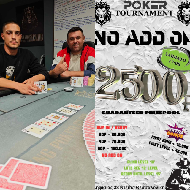 Δυνατό πρόγραμμα και σήμερα με το καθιερωμένο σαββατιάτικο No Addon στις 17:00 (2.500p gtd) και ring games από τις 20:30.