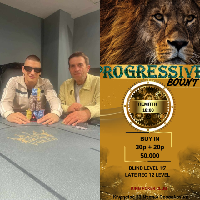 Σήμερα στις 18:00 σας περιμένει ένα 50p NLH Progressive Bounty και από τις 20:30 και μετά τα ring games.