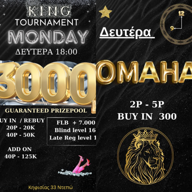Κing: 3.000p gtd και 2p/5p PLO απόψε, ξεκινάει το Mega tour (30k gtd) στον Βόλο