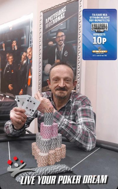 Στο freeroll του Περιστερίου τέλος είχαμε 23 συμμετοχές, 100 rebuys και τον “Nιάου” στην κορυφή.