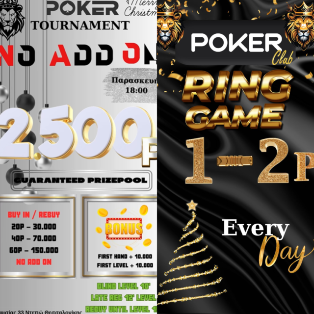 Θυμίζουμε πως ανακοινώθηκε το Christmas tournament το τριήμερο 27-29 Δεκεμβρίου με 15.000p gtd!
