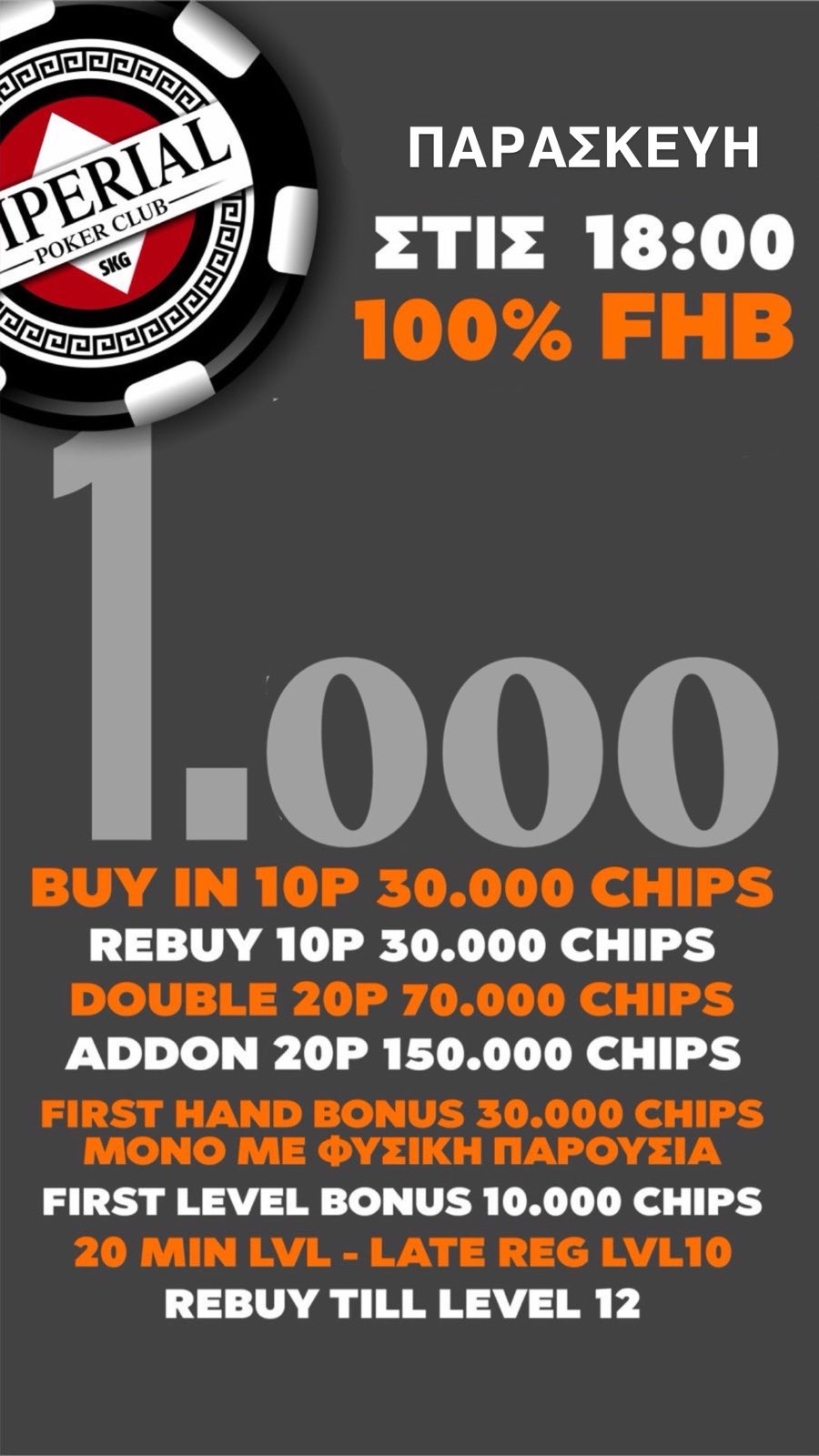 Bonus 30.000 chips αν είστε παρόντες στο πρώτο hand