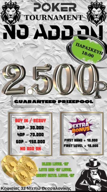 Δύο τουρνουά No Addon με 5.000p gtd και το γνωστό structure έχουν προγραμματιστεί εκτάκτως για το διήμερο αυτό.