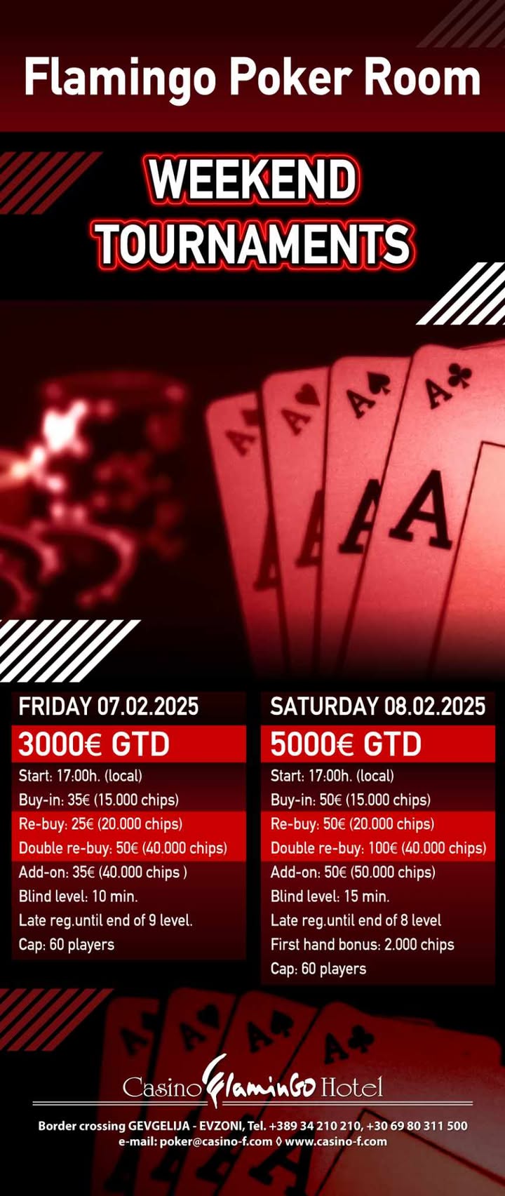 Την Παρασκευή στις 17:00 τοπική / 18:00 Ελλάδος ένα €35 NLHE με €3.000gtd και το Σάββατο στις 17:00 τοπική / 18:00 Ελλάδος ένα €50 NLHE με €5.000gtd!