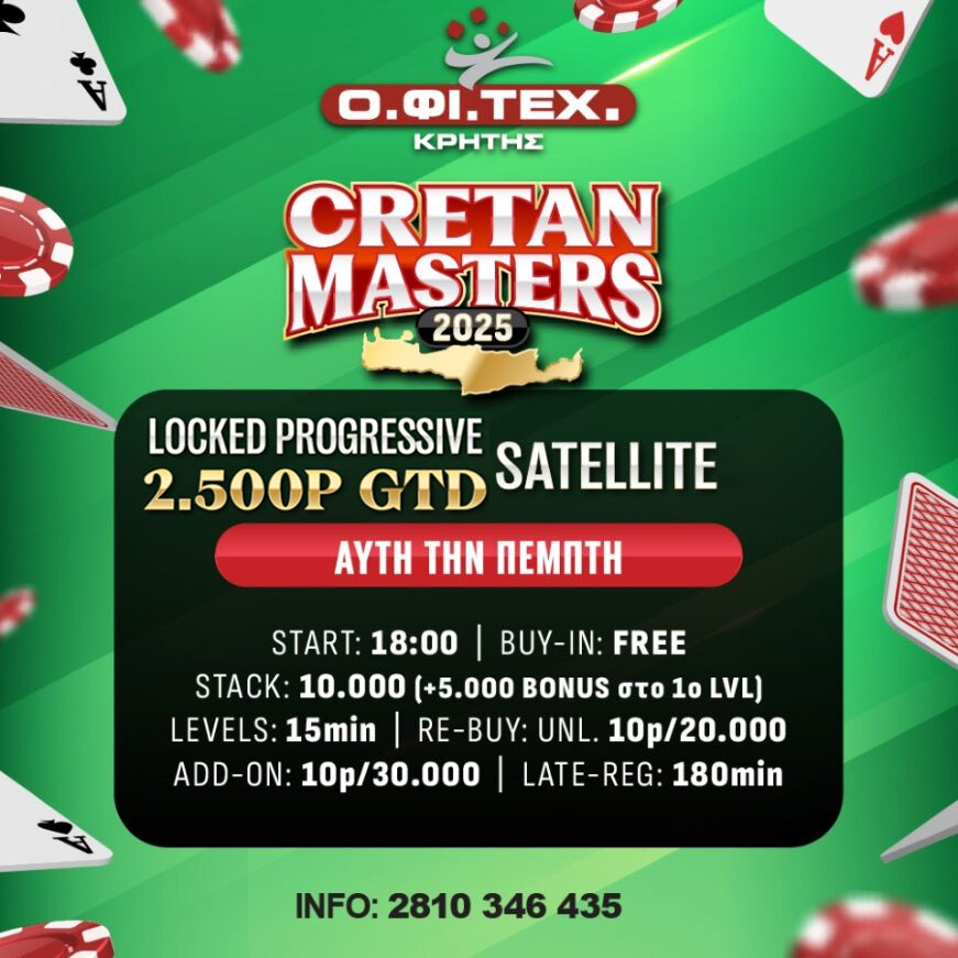 Οι θέσεις 1, 2, 3 και bubble κερδίζουν επιπλέον 1 Satellite Ticket 50p για το επερχόμενο Πανελλήνιο Πρωτάθλημα.