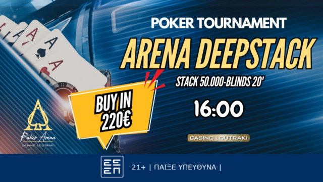 Το Arena poker room του Club Hotel Casino Loutraki φιλοξενεί αυτή την Tετάρτη ακόμη ένα €220 Deepstack με ώρα έναρξης στις 16:00.