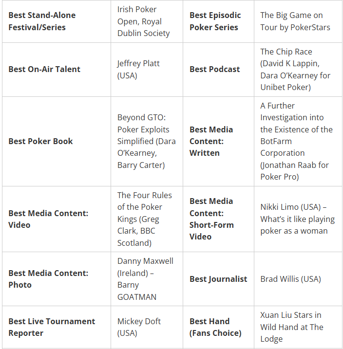 Η 6η ετήσια τελετή των Global Poker Awards πραγματοποιήθηκε στα στούντιο του PokerGO στο Aria Resort & Casino στο Λας Βέγκας το περασμένο Σάββατο με 37 τρόπαια να απονέμονται.