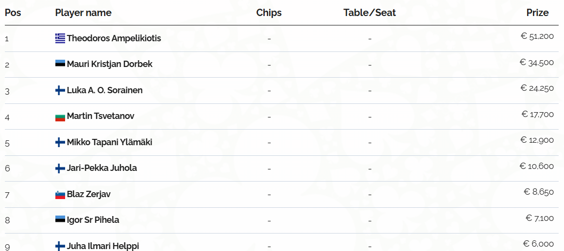 Αυτή τη φορά πεδίο δράσης το διήμερο €3.000 NLHE του Kings of Tallinn (65 entries) που ολοκληρώθηκε μετά από 26 levels.