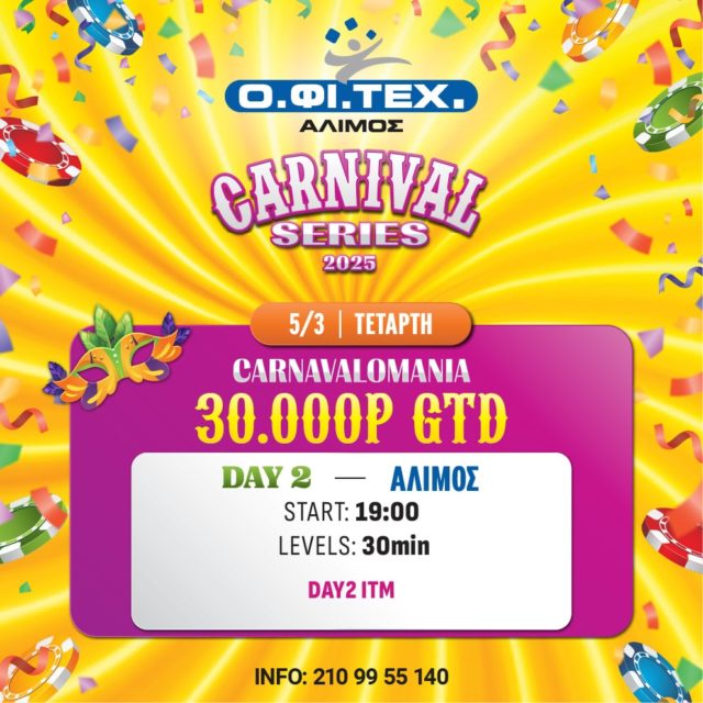 το Wednesday Challenge και τη Day 2 της Carnavalomania (30.000p gtd) στον Άλιμο