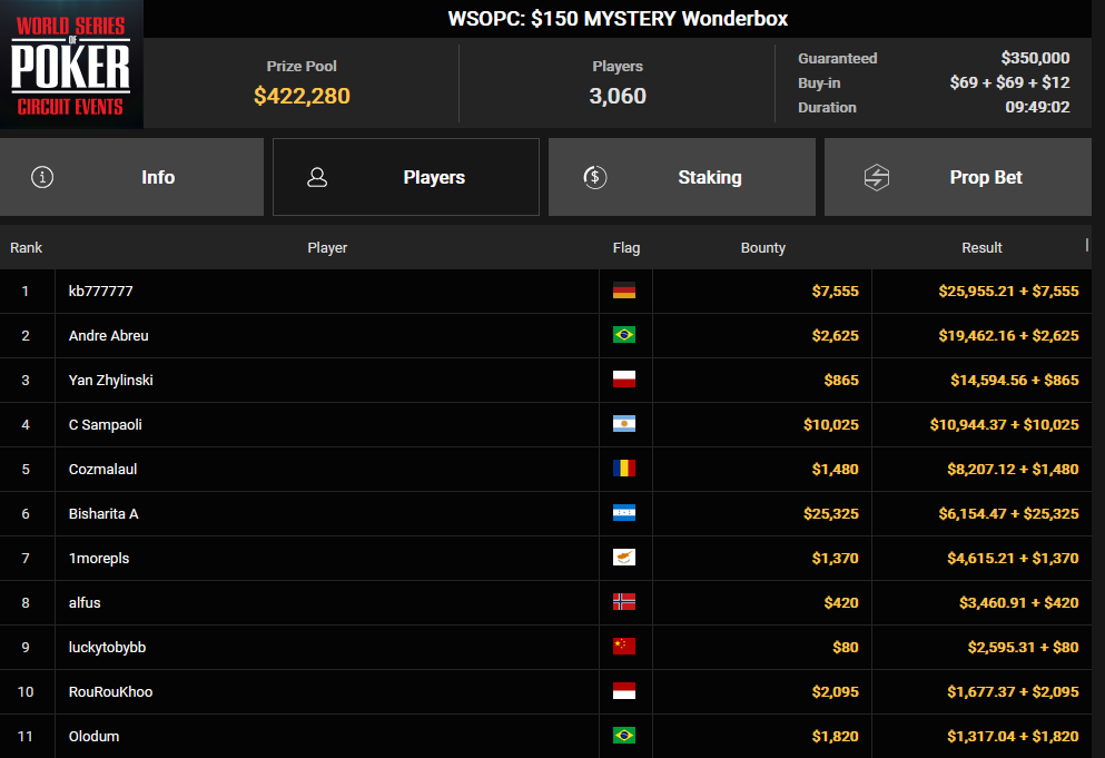 Στην 7η θέση του $150 Μystery Wonderbox αποκλείστηκε ο Δημήτρης “1morepls” Στάβαρης κερδίζοντας $5.985.