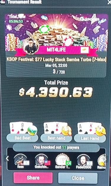 Στην 3η θέση του $77 Lucky Stack αποκλείστηκε ο Γιάννης Σουρουκίδης κερδίζοντας $4.391.