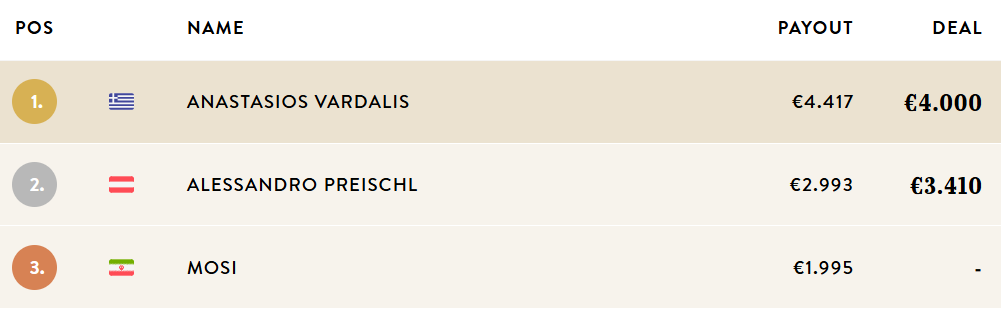 Μετά από heads-up deal με τον Αυστριακό Alessandro Preischl o Τάσος Βαρδαλής ήταν αυτός που αναδείχθηκε νικητής για €4.000, ιδανική αρχή ενόψει της συνέχειας στο φεστιβάλ!