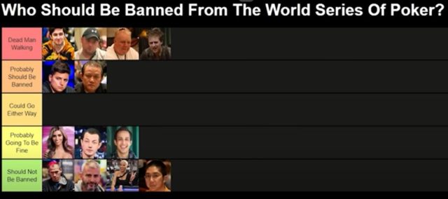 Ένας γνωστός επαγγελματίας των high-stakes, ο οποίος πριν από πολλά χρόνια πιάστηκε να παίζει με πολλαπλούς λογαριασμούς στο ίδιο τουρνουά. Παρόλο που τότε πιάστηκε επ’ αυτοφώρω, έχει περάσει πολύς καιρός χωρίς περαιτέρω σκάνδαλα. Συνεπώς, δεν θα έπρεπε να αποκλειστεί και μπαίνει στο Tier 5 (Δεν πρέπει να αποκλειστεί).