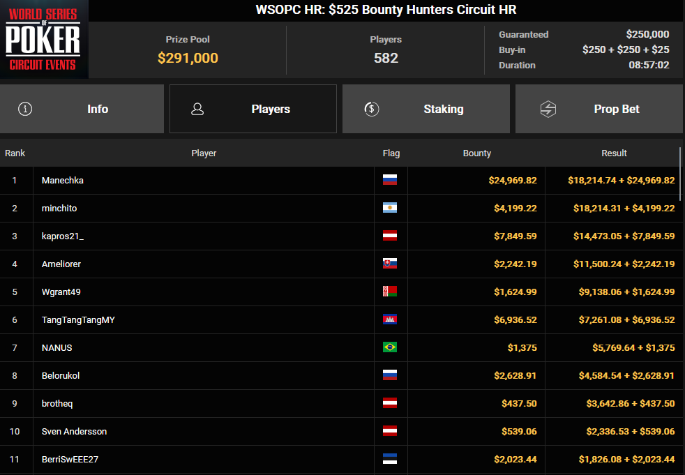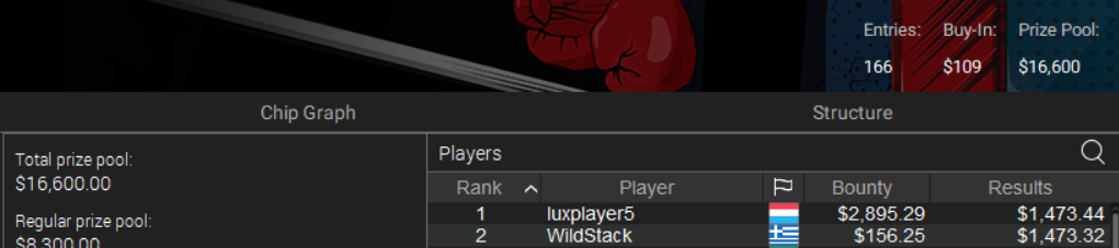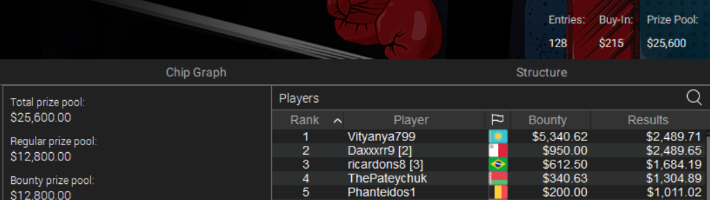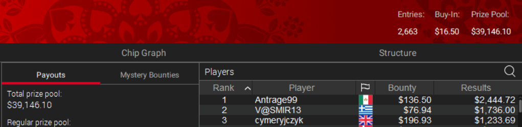Στο heads-up του $16.50 Mystery Bounty νικήθηκε ο “V@SMIR13” κερδίζοντας $1.813.