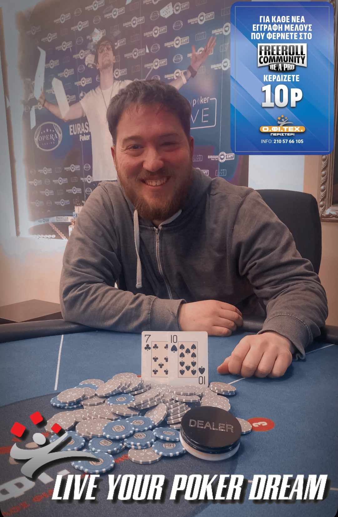 Στη Mega Monday του Αλίμου (63e/71r) κυριάρχησε ο Θάνος Γεωργαρος για 1.000p, στο Omaha Magic Tour του Πειραιά (28 entries) o Γιάννης Βαβανός για 700p και στο freeroll του Περιστερίου (22e/70r) ο “John Fak” (φωτο).