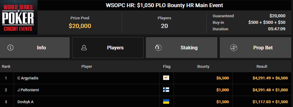 Δύο αξιοσημείωτα σκορ χθες για τον Χρήστο Αργυριάδη που σήκωσε το $1k PLO Bounty για $10.791 και τερμάτισε στην 6η θέση του $525 PLO Bounty για ακόμη $2.115.