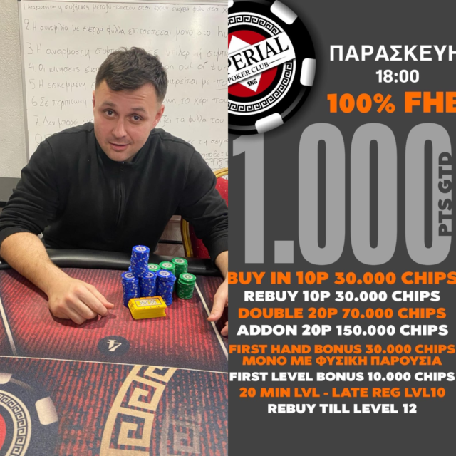 Απόψε στις 18:00 ένα 10p NLHE με 1.000p gtd, ενώ το τριήμερο 15-17 Απριλίου έρχεται νέο special event με 10.000p gtd!