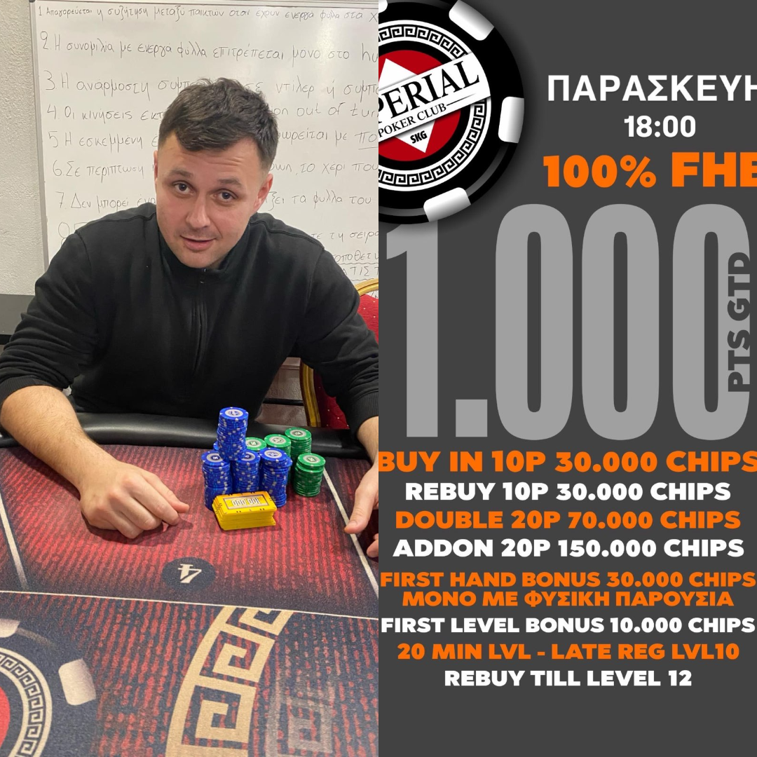 Σημείωση: Το bonus 1st hand δίνεται μόνο με φυσική παρουσία του παίκτη.
