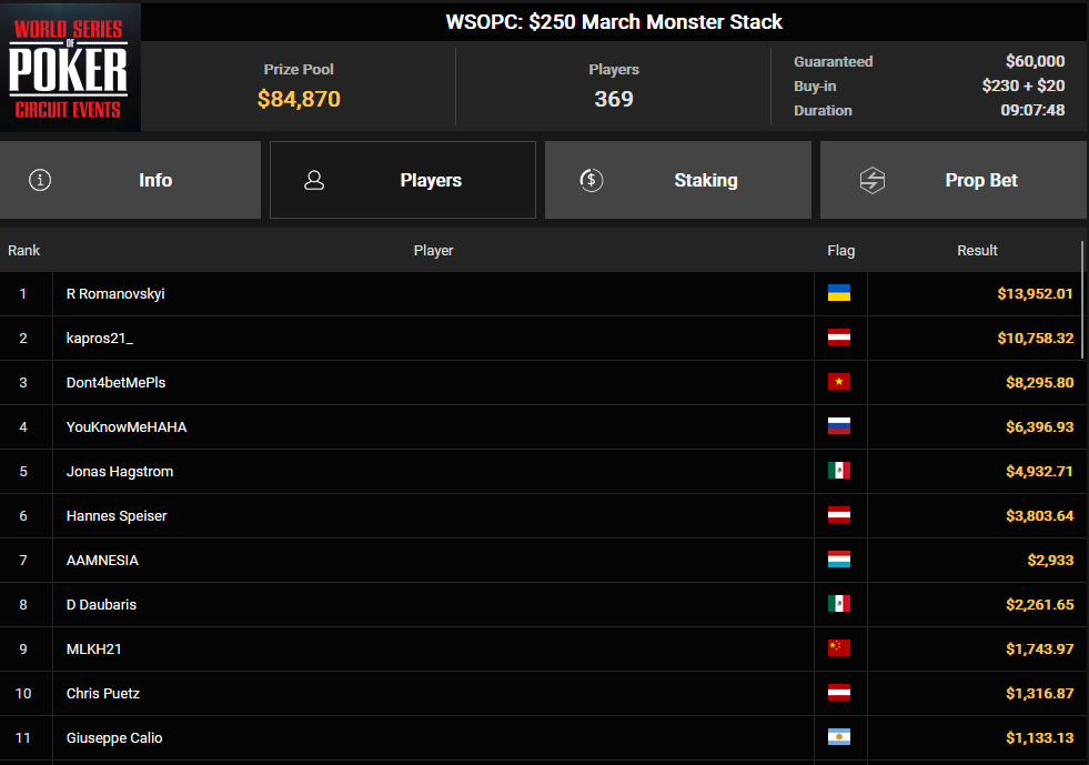 Στην 2η θέση του $250 March Monsterstack τερμάτισε ο Μάριος “kapros21_” Καπίρης κερδίζοντας $10.758!