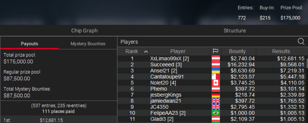 Στην 4η θέση του $215 Monday Mystery αποκλείστηκε ο “Cantaloupe91” εξασφαλίζοντας $7.571.