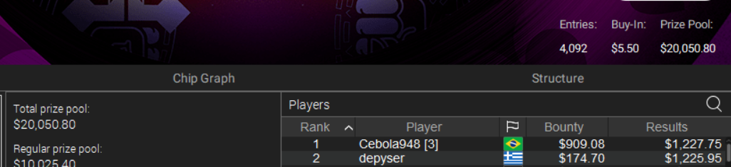 Στο heads-up του $5.5 Bounty Builder ηττήθηκε ο “depyser” για $1.400.