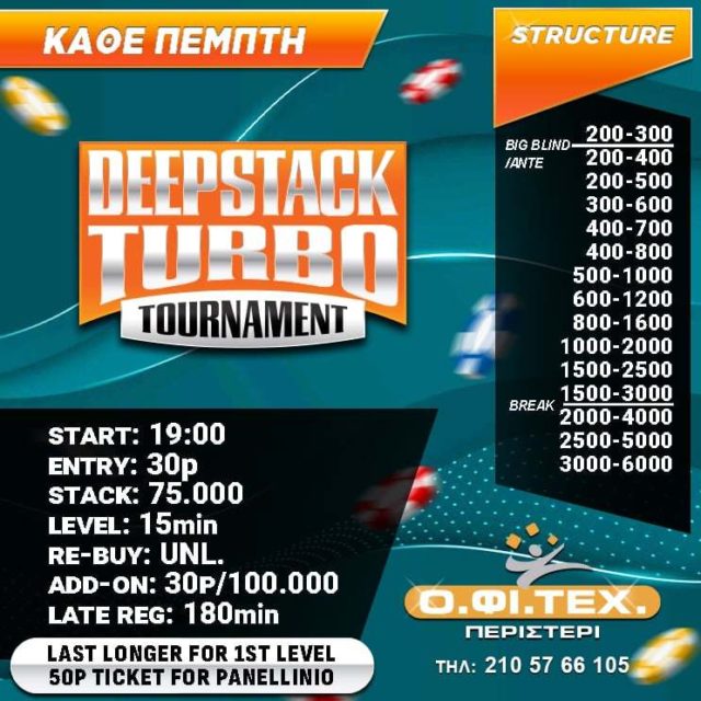 Καθυστερημένες εγγραφές και δικαίωμα για απεριόριστα rebuys (10p/20.000) τα πρώτα 180 λεπτά