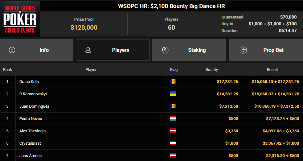 Στην 5η θέση του $2.100 Bounty Big Dance αποκλείστηκε ο Αλέξανδρος Θεολόγης κερδίζοντας $8.648.