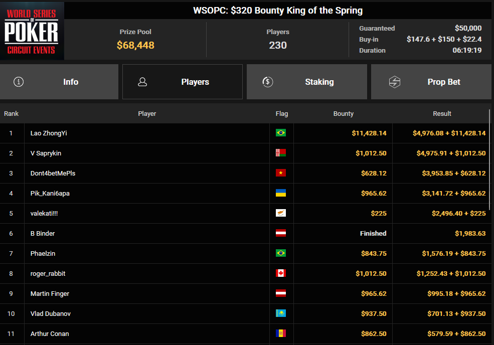 Στην 5η θέση του $320 Bounty King αποχώρησε ο “valekati!!!” κερδίζοντας $2.721.