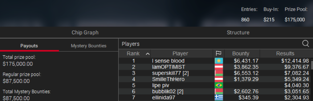 Στην 7η θέση του $215 Monday Mystery τερμάτισε τέλος η “ellinida97” για $2.650.