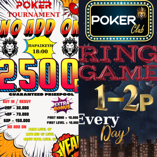 Για τους φίλους των ring games φυσικά δεν θα λείπουν και τα Texas/PLO games τις βραδινές ώρες.