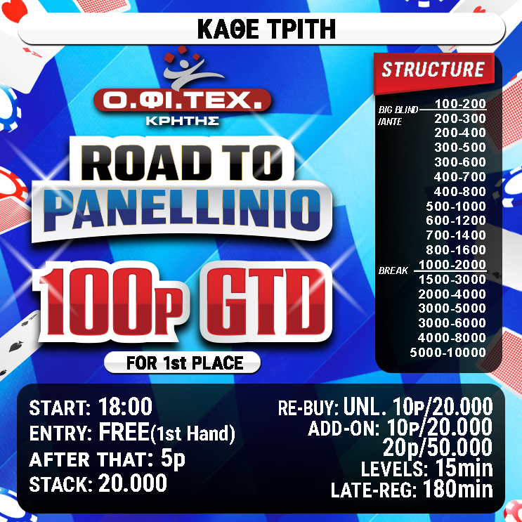 Είσοδος: 0p (5p μετά το πρώτο hand)