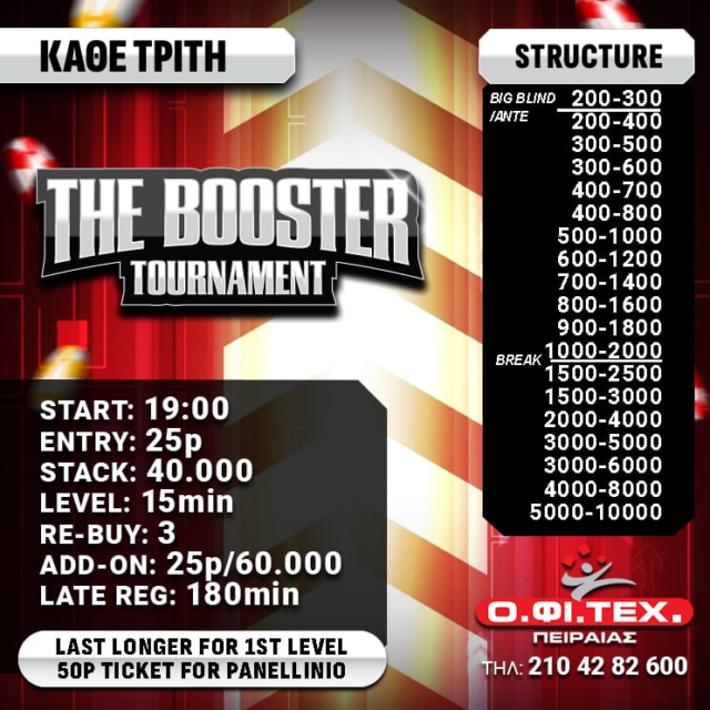 Καθυστερημένες εγγραφές και δικαίωμα για απεριόριστα rebuys (10p/20.000) τα πρώτα 180 λεπτά