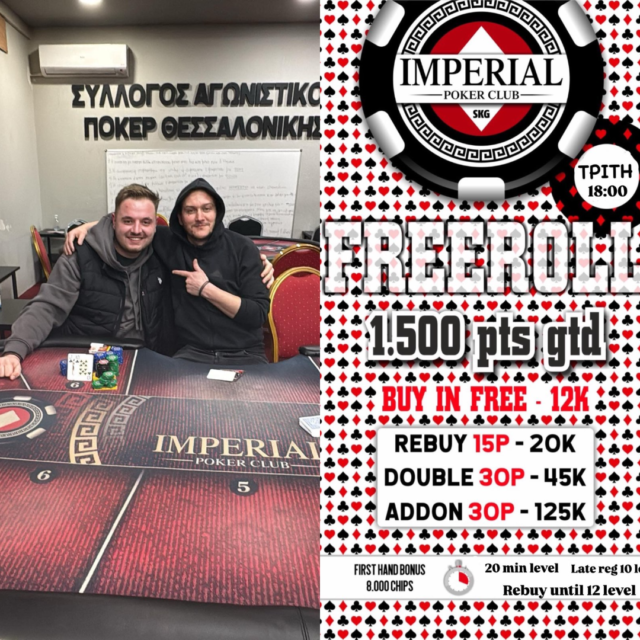 Ο Αγωνιστικός σύλλογος Texas Hold’em ‘Imperial club’ εδρεύει στη Nέστου 4 στην Πολίχνη (Ανθόκηποι), πλησίον του γηπέδου του Μακεδονικού.