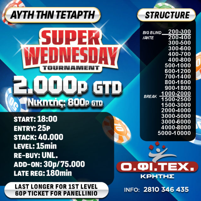 και τη Super Wednesday (2.000p gtd) στο Ηράκλειο Κρήτης