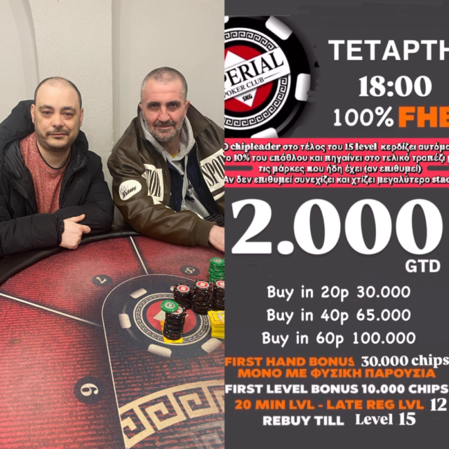 Ο Αγωνιστικός σύλλογος Texas Hold’em ‘Imperial club’ εδρεύει στη Nέστου 4 στην Πολίχνη (Ανθόκηποι), πλησίον του γηπέδου του Μακεδονικού.