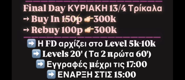 Με τουλάχιστον 38 παίκτες και ανοικτές τις εγγραφές θα φιλοξενηθεί την Κυριακή στις 15:00 η Day 2 στο River room των Τρικάλων.