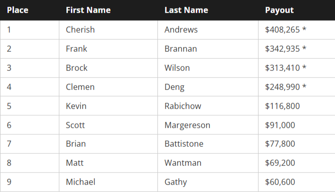 721.675 δολάρια μοιράστηκε ένα ζευγάρι (Cherish Andrews και Brock Wilson) σε ένα $25k High Roller στη Φλόριντα αυτή την εβδομάδα!