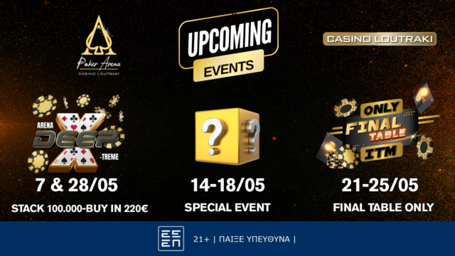 Με τρία νέα events εμπλουτίζει το πρόγραμμα του Μαΐου το Arena poker room του Club Hotel Casino Loutraki!