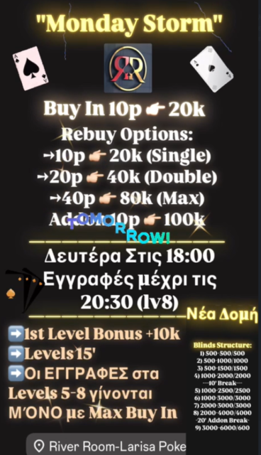 Αυτή τη φορά με νέα δομή και ανοικτές εγγραφές/rebuys μέχρι το όγδοο level.