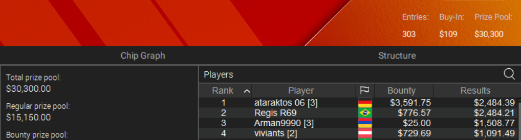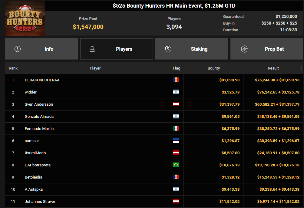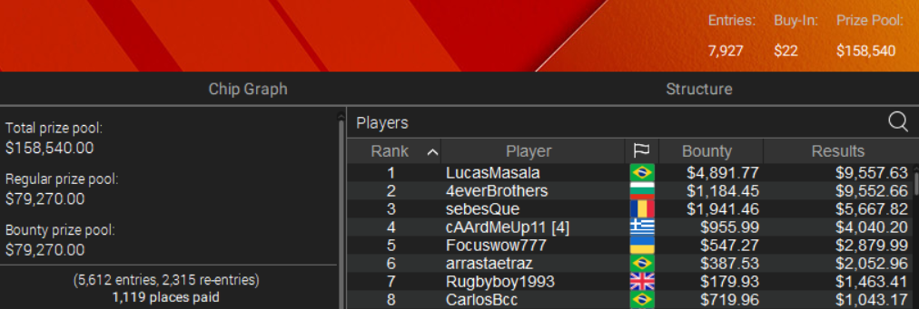 Το σκορ της ημέρας πέτυχε την Κυριακή ο Ανδρέας “Lampovic” Μαυρομουστάκης που αποκλείστηκε στην 12η θέση του $525 Βοunty Hunters για $19.311!