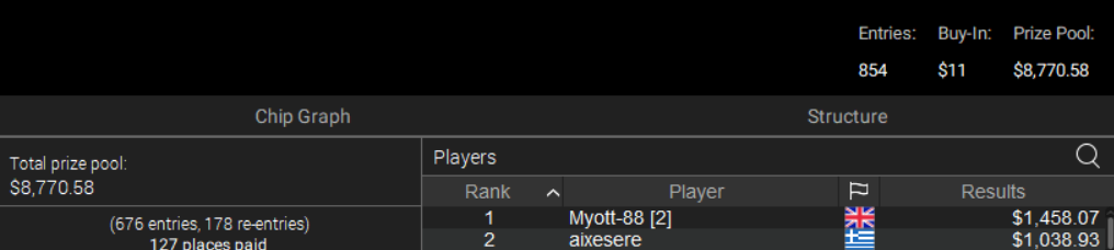 Στο heads-up του $11 Mini Sundaw Wrap ηττήθηκε τέλος ο “aixesere” για $1.039.
