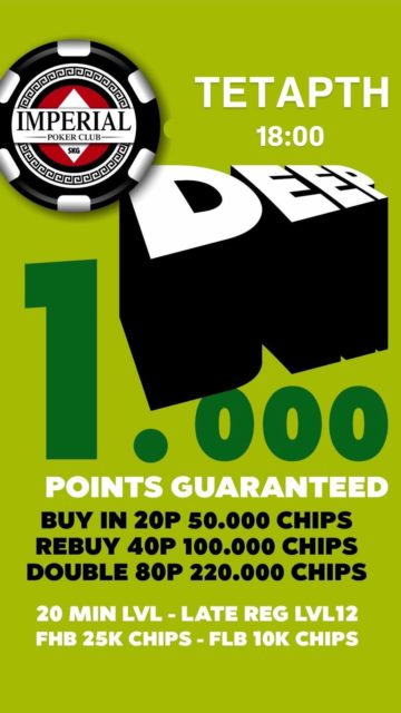 Τετάρτη 23 Απριλίου – NLHE Deepstack