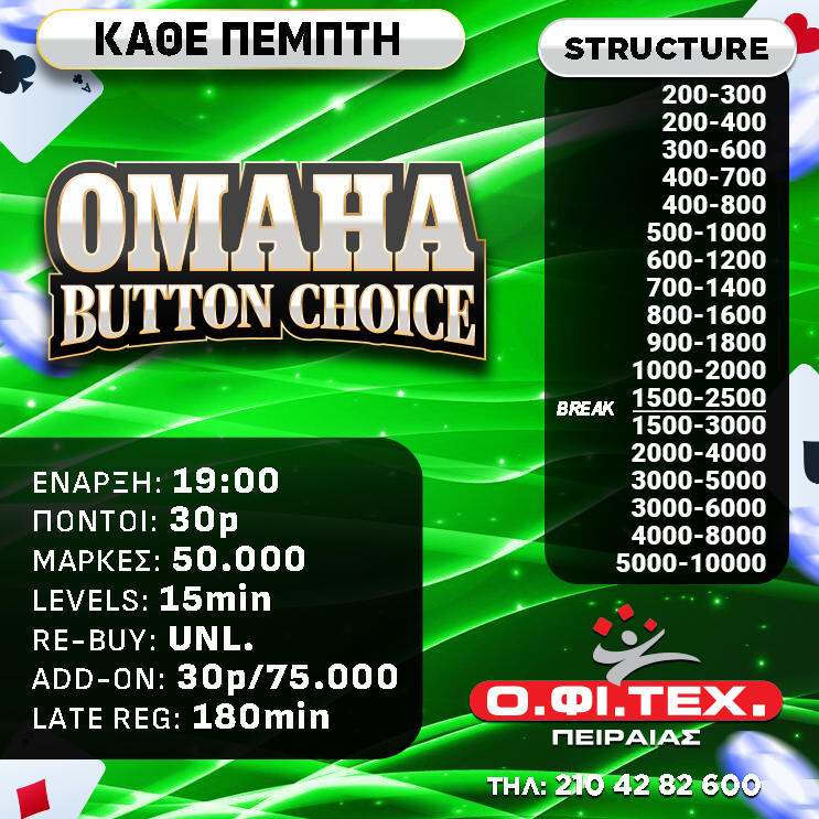 το freeroll road to Omaha και το Omaha Button Choice 4-5-6 στον Πειραιά