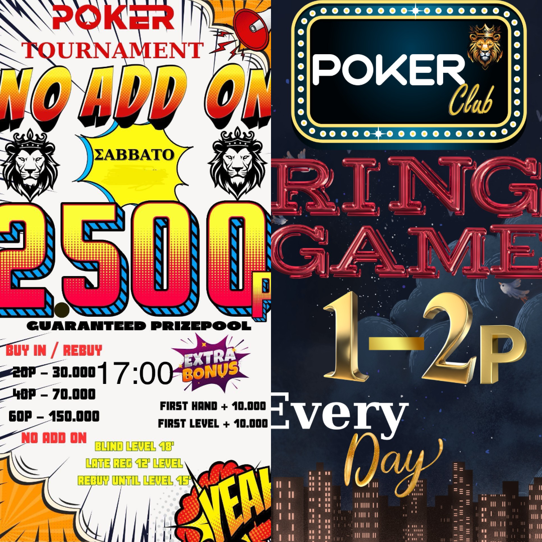 Λίγο νωρίτερα όπως κάθε Σάββατο (17:00) η έναρξη του No Addon που συνοδεύεται και πάλι από 2.500p gtd! Για τους φίλους των ring games φυσικά δεν θα λείπουν και τα Texas/PLO games τις βραδινές ώρες.