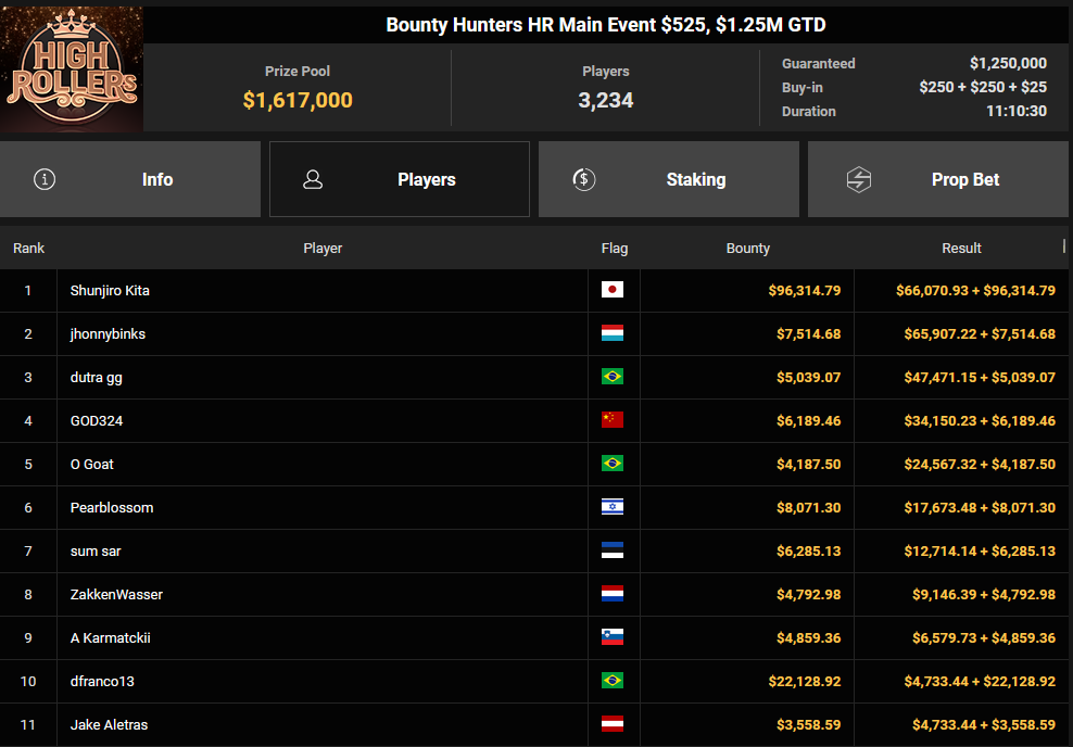 Δύο αξιοσημείωτα σκορ και για τον “Jake” που τερμάτισε στην 11η θέση του $525 Bounty Hunters για $8.292 και στην 10η θέση του $525 Omaholic για ακόμη $3.622.