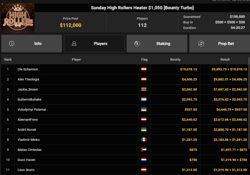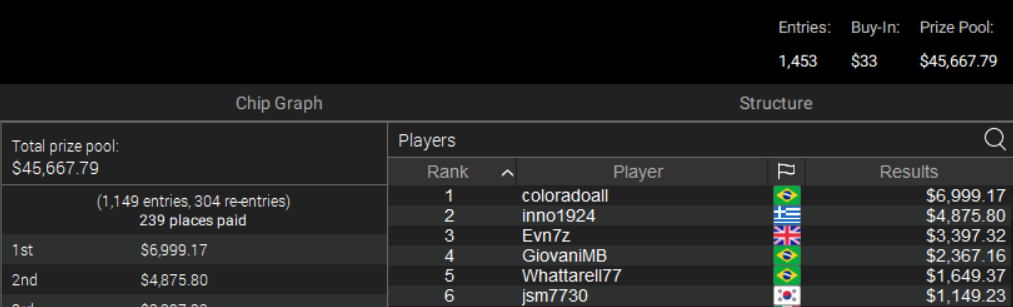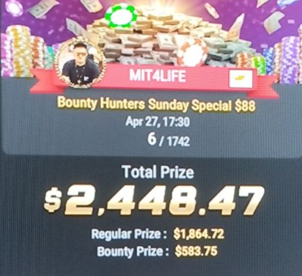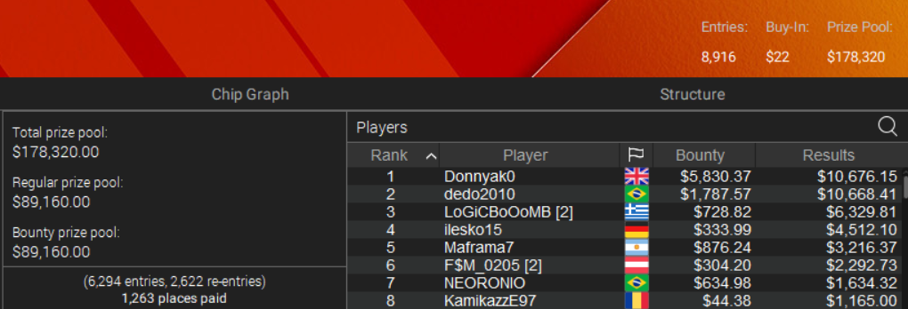 Στην 3η θέση του SCOOP Warm-Up 30-L ($22 NLHE PKO) τερμάτισε εξάλλου ο “LoGiCBoOoMB” για $7.359.