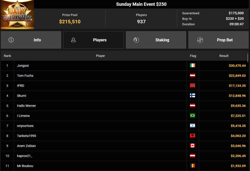 Στην 10η θέση του $250 main event τερμάτισε τέλος ο Μάριος “kapros21_” Καπίρης κερδίζοντας $2.206.