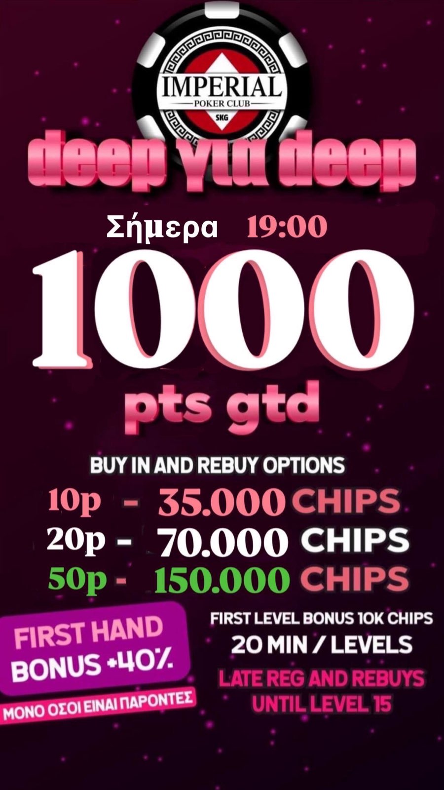Imperial: 9.240p και deal για τέσσερις, deepstack (1.000p gtd) στις 19:00