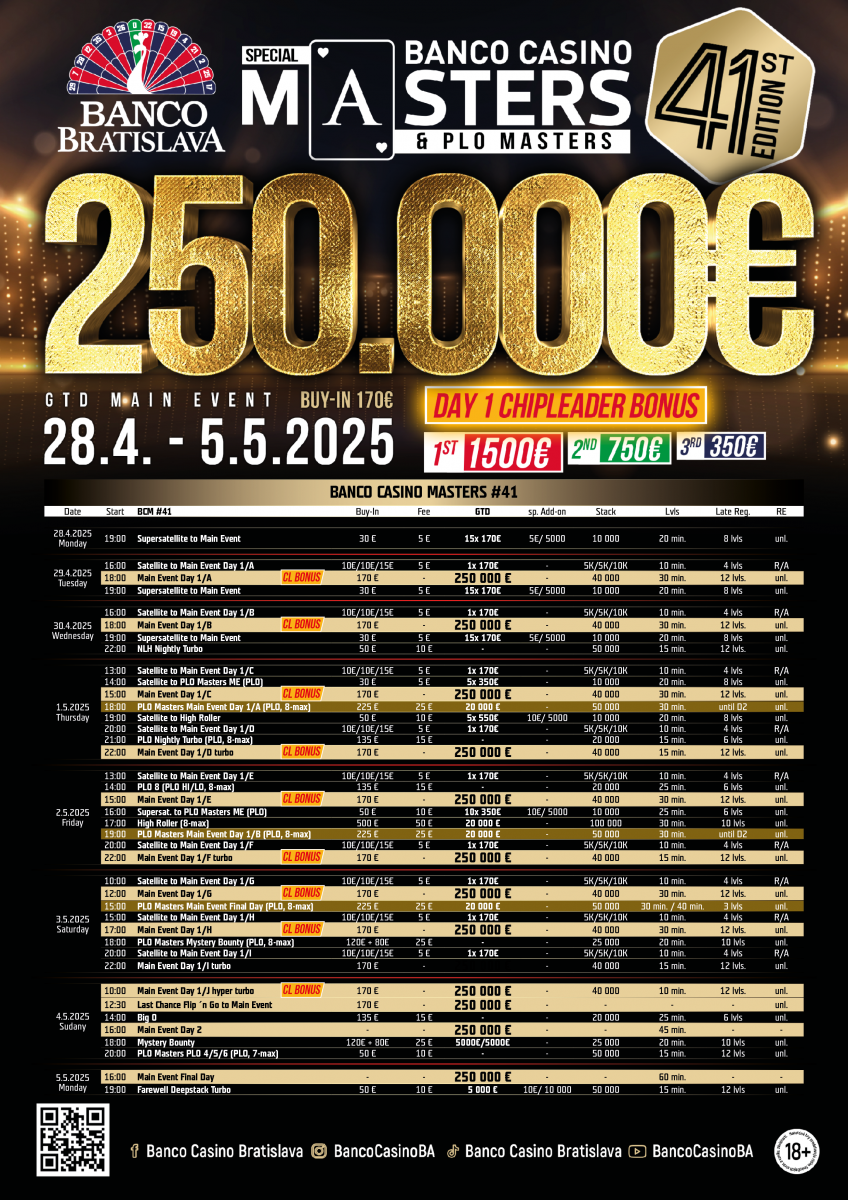 Στη Μπρατισλάβα τέλος και στο €170 Banco Masters main event είχαμε από τα δύο χθεσινά flights την πρόκριση πέντε Κυπρίων παικτών! Ο Μαρίνος Γεωργιάδης μάλιστα – ως chip leader της Day 1d – έλαβε bonus 1.500 ευρώ!